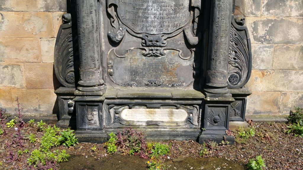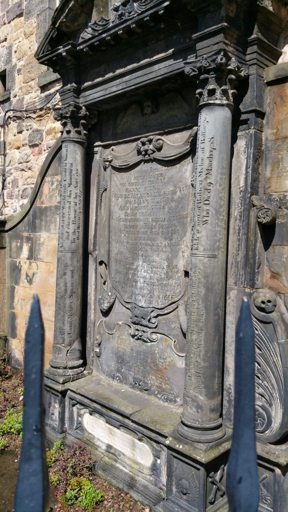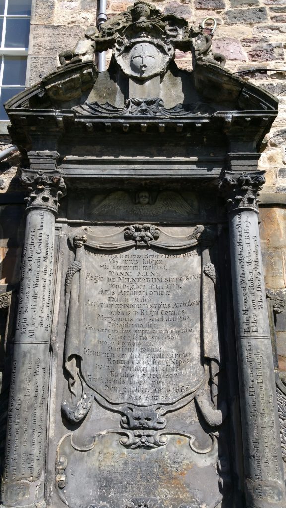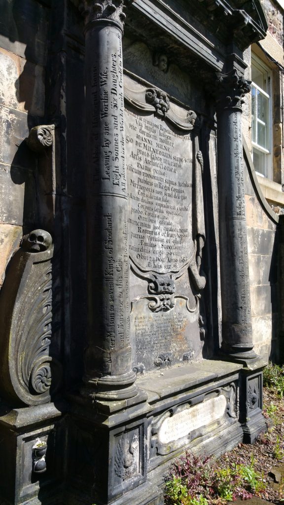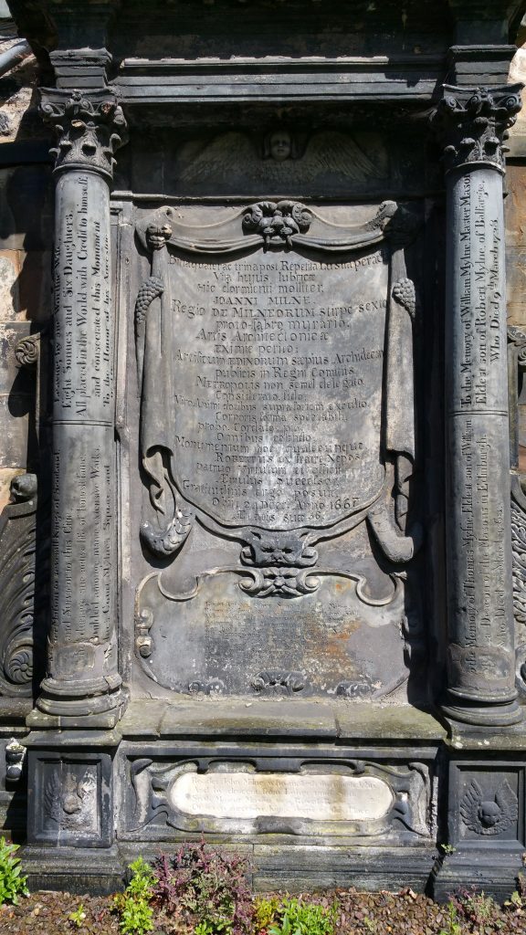 The grave of John Mylne, Master Mason to the King of Scots, in Greyfriars Kirkyard in Edinburgh